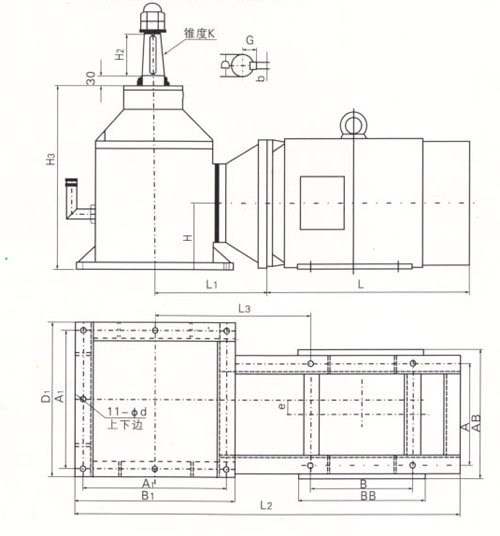 WB型循環(huán)水冷卻塔風機專用低噪音減速機,是我公司根據(jù)環(huán)保要求、環(huán)保噪聲而精心設(shè)計的一類單級雙曲面錐齒輪減速機。該機與電機采用定位止口直聯(lián)傳遞動力,取消了傳動軸,將防水電機與減速機直聯(lián)于專用機架上,成為一體置于風筒內(nèi),因而運行平衡,噪音低,安裝維修簡便。本機采用鋰基潤滑脂ZL-3H( SY1413-80)潤滑上軸承,其余軸承和齒輪為浸油潤滑,保證了本機械效率高,承載能力強,安全可靠。